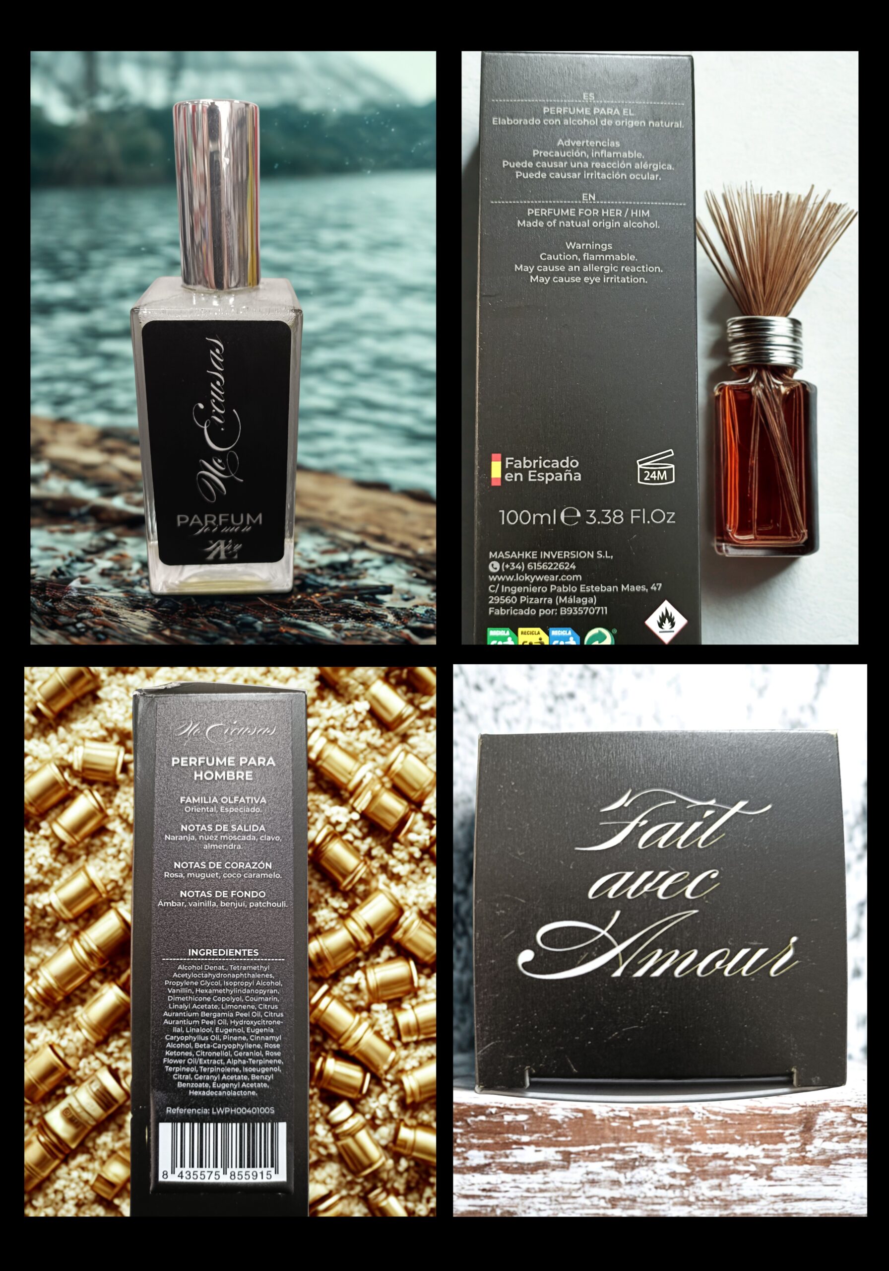 Descubre la elegancia y sofisticación de Lucinda Parfum para Hombre, una cautivadora fragancia oriental dulce especiada de 50ml que despierta los sentidos. Este perfume masculino presenta una composición aromática única que se desarrolla en tres fases distintivas. Las notas de salida revelan un encuentro fascinante entre hojas de tabaco, geranio, canela y clavos, creando una entrada vibrante y masculina. En el corazón de la fragancia, se despliegan acordes sensuales de tonka, vainilla y cacao, añadiendo una dimensión cálida y envolvente. Las notas de fondo, compuestas por ámbar y maderas nobles, proporcionan una base duradera y memorable. Esta fragancia sofisticada es perfecta para el hombre moderno que aprecia los aromas refinados y busca destacar con una presencia única y distinguida. Ideal para ocasiones especiales o uso diario, este perfume combina la tradición artesanal con una interpretación contemporánea de la perfumería masculina.
