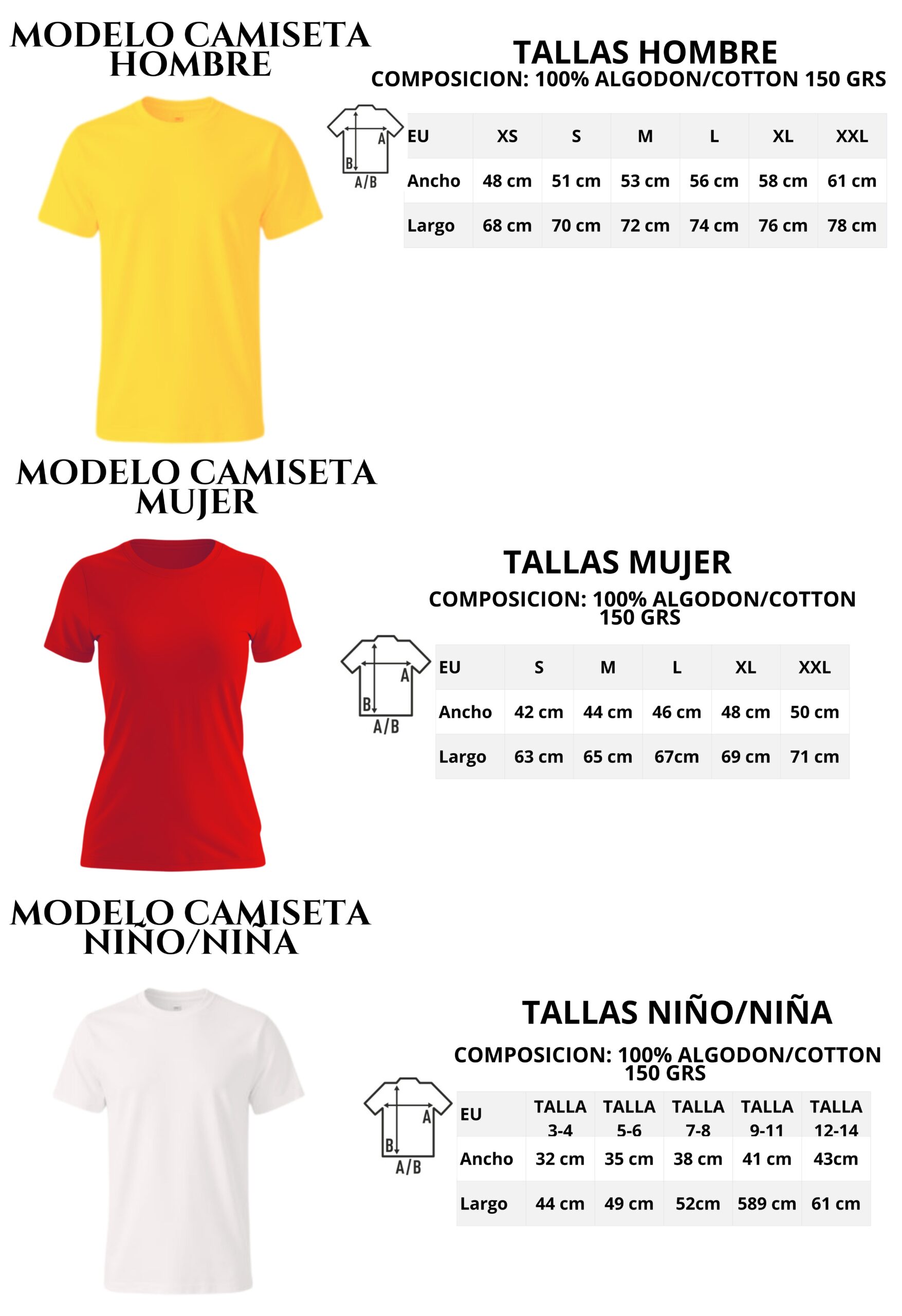 Medidas NIÑO/NIÑA :3-4 (PECHO :32 CM ,LARGO:44 CM)- 5-6 (PECHO :35 CM ,LARGO 49 CM) – 7-8(PECHO :38 CM ,LARGO 52 CM) -9-11 (PECHO :41 CM ,LARGO 58 CM)-12-14( PECHO :43CM ,LARGO 61 CM)